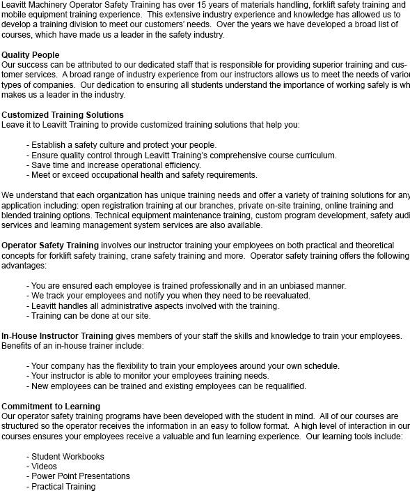 Our significant number of programs should ensure that you will discover the right one for you or your staff. Whether you are searching for somebody to come teach at your place of work or would prefer to train at our facility, we can accomodate all your requests. Every course can be tailored to your equipment and workplace.
